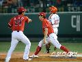 21일 대전 기아와 한화의 경기. 5회말 2사 3루 한화 이여상이 내야 안타를 치고 1루에서 간발의 차로 세이프되고 있다. 지켜보던 윤석민이 아웃이라고 손짓하고 있다.대전=정재근 기자 cjg@sportschosun.com